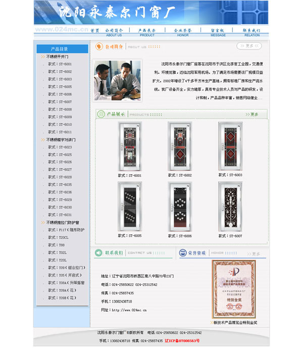 我廠的產(chǎn)品每年均由沈陽市質(zhì)量監(jiān)督檢驗所定期檢驗,曾在2002年第十屆中國專利新技術(shù)產(chǎn)品博覽會上榮《特別金獎》,我廠生產(chǎn)的不銹鋼防護(hù)窗現(xiàn)已成形,多種型號系列產(chǎn)品,在市場知名度和銷量的占有率均達(dá)到令人滿意的程度。目前產(chǎn)品銷往遼寧、吉林、黑龍江、江蘇、山東、浙江、河南、河北、內(nèi)蒙等地。