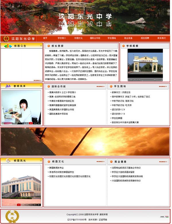 沈陽東光中學創(chuàng)辦于1937年,隸屬于沈陽教育局,悠久的辦學歷史,特色的辦學理念,完善的教學設施,使今天的東光中學成為振興遼寧經(jīng)濟、振興民族教育、提高民族素質(zhì)的搖籃。學校周邊綠樹環(huán)繞,交通便利,為學子營造了優(yōu)雅別致的學習環(huán)境。目前學校投巨資,改建了教學樓、綜合樓、教室里安裝了現(xiàn)代化教學設備—投影儀、電腦及主控設備,使每個學生都能夠享受到信息化時代的優(yōu)質(zhì)課堂教學。學校還開設了選修課,實行學分制,學生實現(xiàn)個性化發(fā)展搭建了平臺。