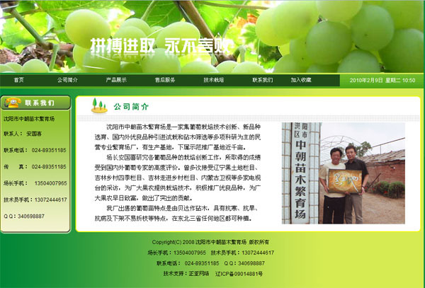 沈陽市中朝苗木繁育場是一家集葡萄栽培技術創(chuàng)新、新品種選育、國內外優(yōu)良品種引進試栽和砧木篩選等多項科研為主的民營專業(yè)繁育場廠,有生產基地,下屬示范推廣基地近千畝。