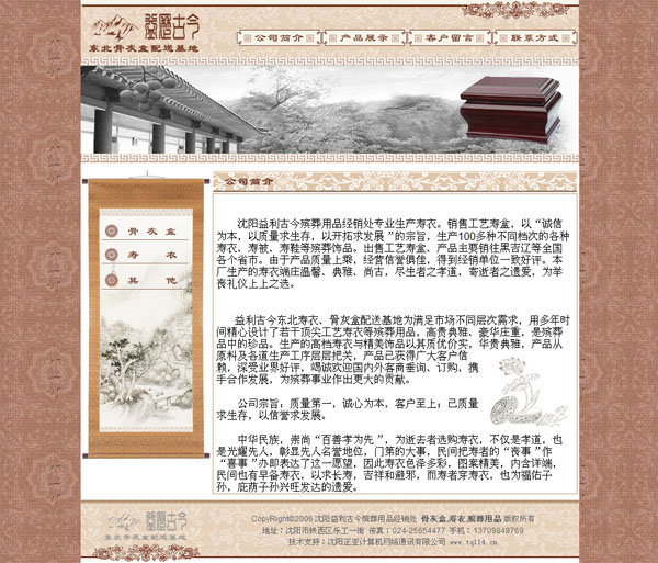 沈陽益利古今殯葬用品經(jīng)銷處專業(yè)生產(chǎn)壽衣。銷售工藝壽盒,以“誠信為本,以質(zhì)量求生存,以開拓求發(fā)展”的宗旨,生產(chǎn)100多種不同檔次的各種壽衣、壽被、壽鞋等殯葬飾品。出售工藝壽盒、產(chǎn)品主要銷往黑吉遼等全國各個(gè)省市。由于產(chǎn)品質(zhì)量上乘,經(jīng)營信譽(yù)俱佳,得到經(jīng)銷單位一致好評(píng)。本廠生產(chǎn)的壽衣端莊溫馨、典雅、尚古,盡生者之孝道,寄逝者之遺愛,為舉喪禮儀上上之選。